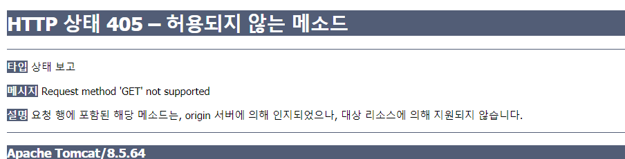 GET 방식으로 요청하는 것은 기본적으로 동일한 결과를 확인할 때 주로 사용합니다. 조회에 어울리는 요청방식이며 주소창에 직접 링크를 입력하는 것은 GET 방식으로써 서버에 요청됩니다. step2를 처리할 때 위에서 작성한 것과 같이 POST메서드에 대해서만 처리하도록 작성했으므로 GET 방식을 찾을 수 없다는 에러메세지를 만나게 됩니다. 아래와 같이 @GetMapping 요청 매핑을 통해 step1 페이지로 리다이렉트를 하게 되면 에러 메세지 대신 약관동의 페이지로 돌아가게 됩니다.