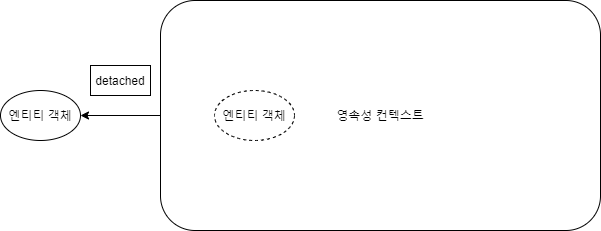 준영속은 영속 상태에 있던 엔티티 객체가 어떠한 이유로 영속성 컨텍스트에서 벗어난 상태를 의미합니다. 준영속 상태의 엔티티는 수정을 해도 데이터베이스에 영향을 끼치지 못합니다. detach(), clear(), close()에 의해 벗어나게 됩니다.