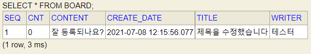 1개의 데이터를 조회하기 위해서는 findById() 메서드를 사용합니다. 리턴값으로 Optional 타입의 객체가 리턴되는데 추가적으로 get() 메서드를 통해 영속성 컨텍스트에 저장된 Board 객체를 얻을 수 있습니다.