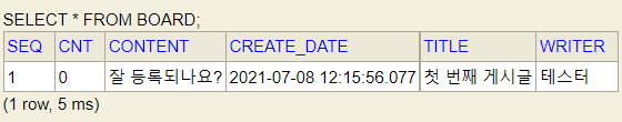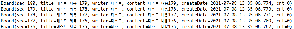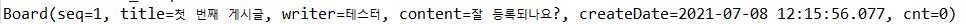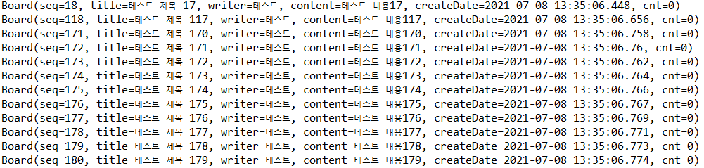 SQL에서 LIKE 기능을 사용하기 위해서는 쿼리 메서드에서 Containing 을 활용합니다. BoardRepository에 findByContentContaining() 메서드를 추가한 후 content에 "17"이 포함된 Board 객체들의 목록을 조회해보도록 합시다.
