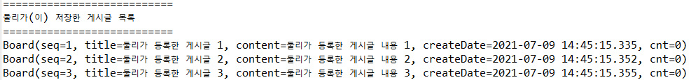 board.setContent("둘리가 등록한 게시글 내용 " + i);